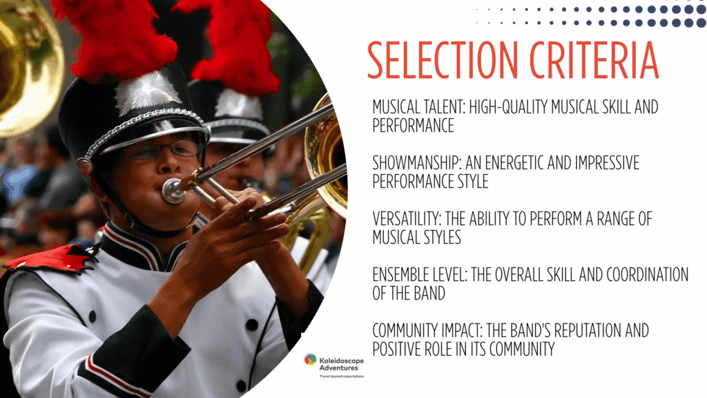 The Macy’s Performance Group Committee reviews applications, with a strong emphasis on the band’s quality of performance, showmanship, and overall skill level.